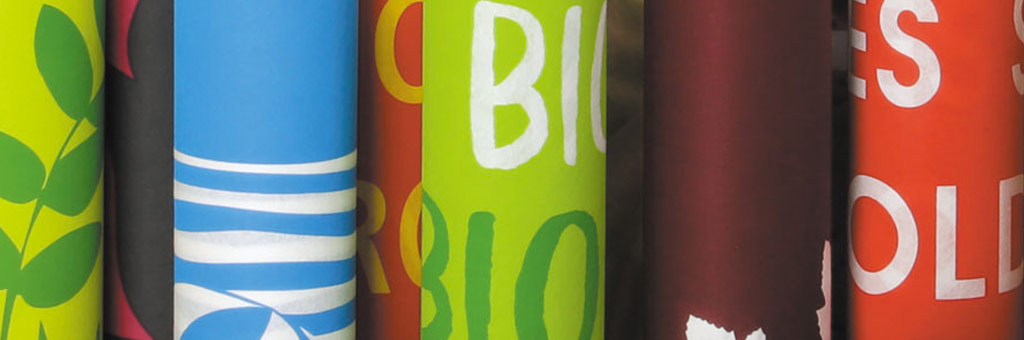 Une diversité de produits destinés à la PLV, s’adaptant à de nombreuses utilisations, imprimé sur de l'intissé 100% recyclé avec des encres sans solvant.